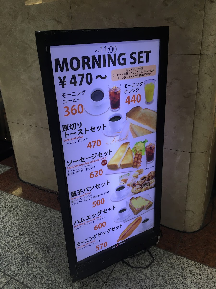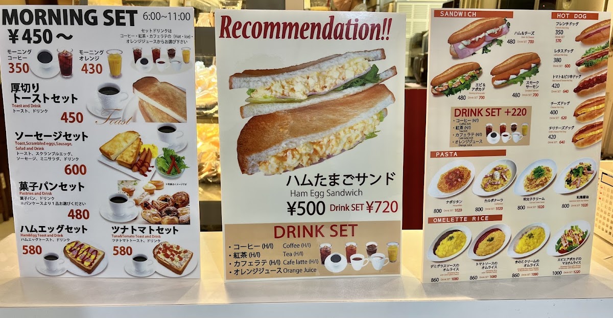 - Morning Sets starting from JP¥410, provide a delightful array of choices, pairing your meal with drinks like coffee or orange juice.